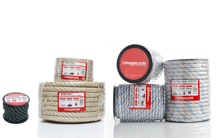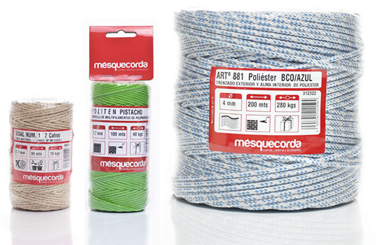 Las cuerdas de gran metraje de 100 o 200 metros se suministran siempre etiquetadas pero nunca con solapa puesto que se suelen colocar en las bandejas de los expositores y no el los ganchos.